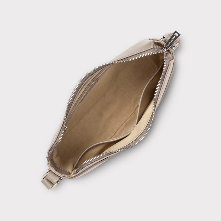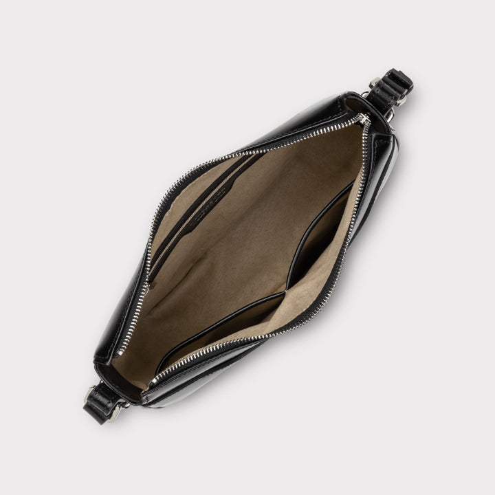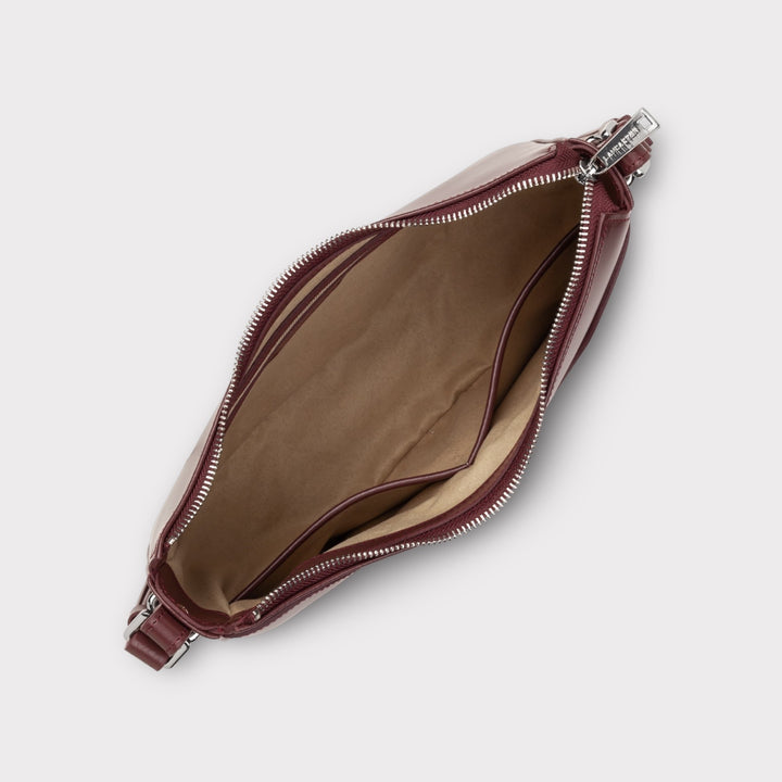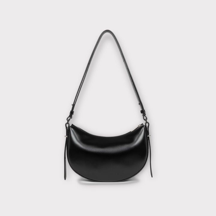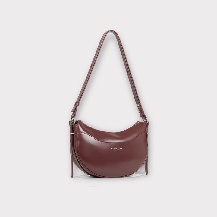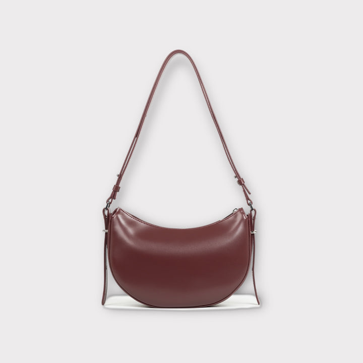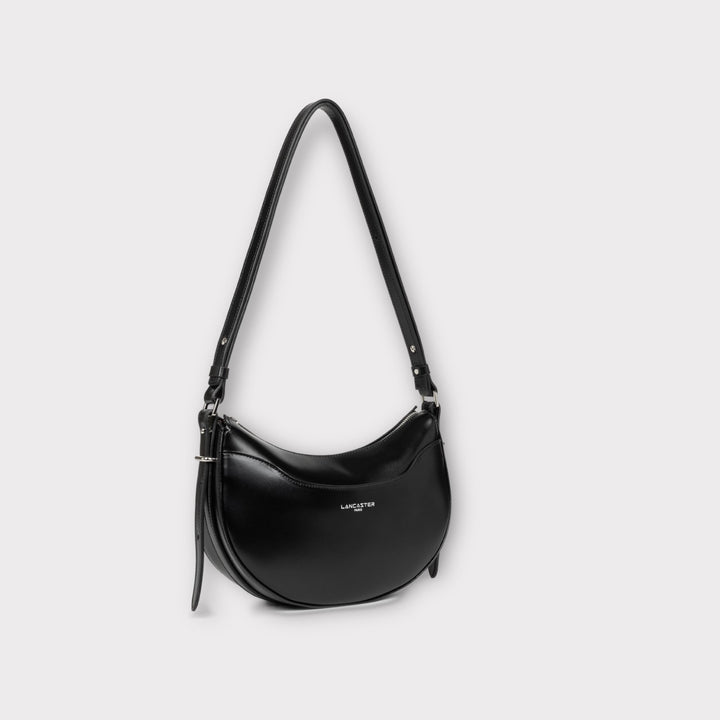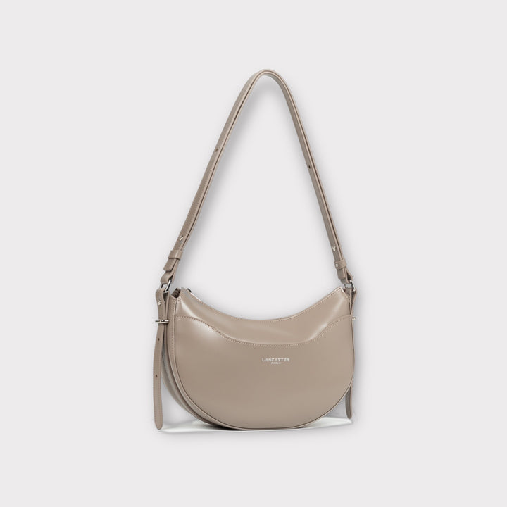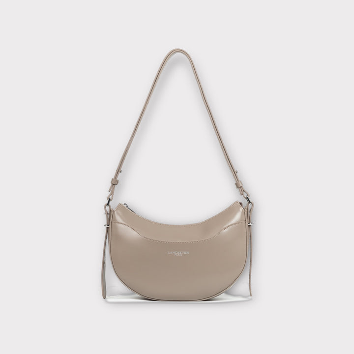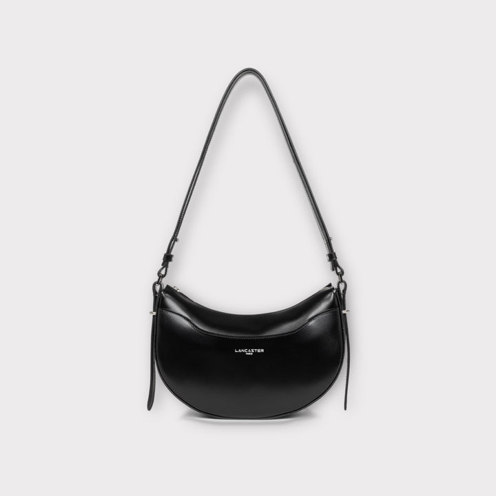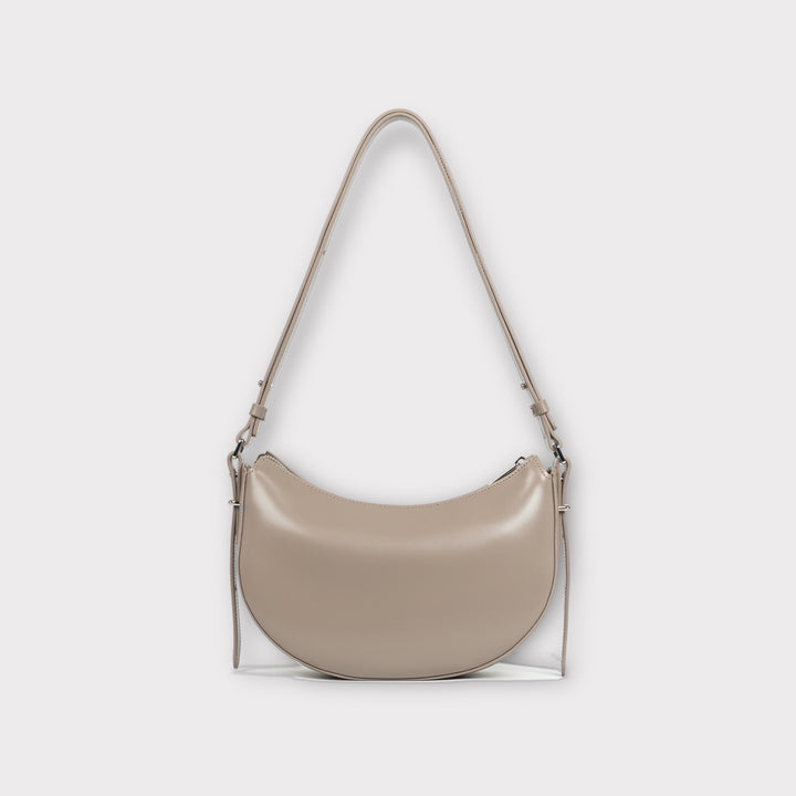 Mezza luna in pelle liscia con zip e scompartimento esterno