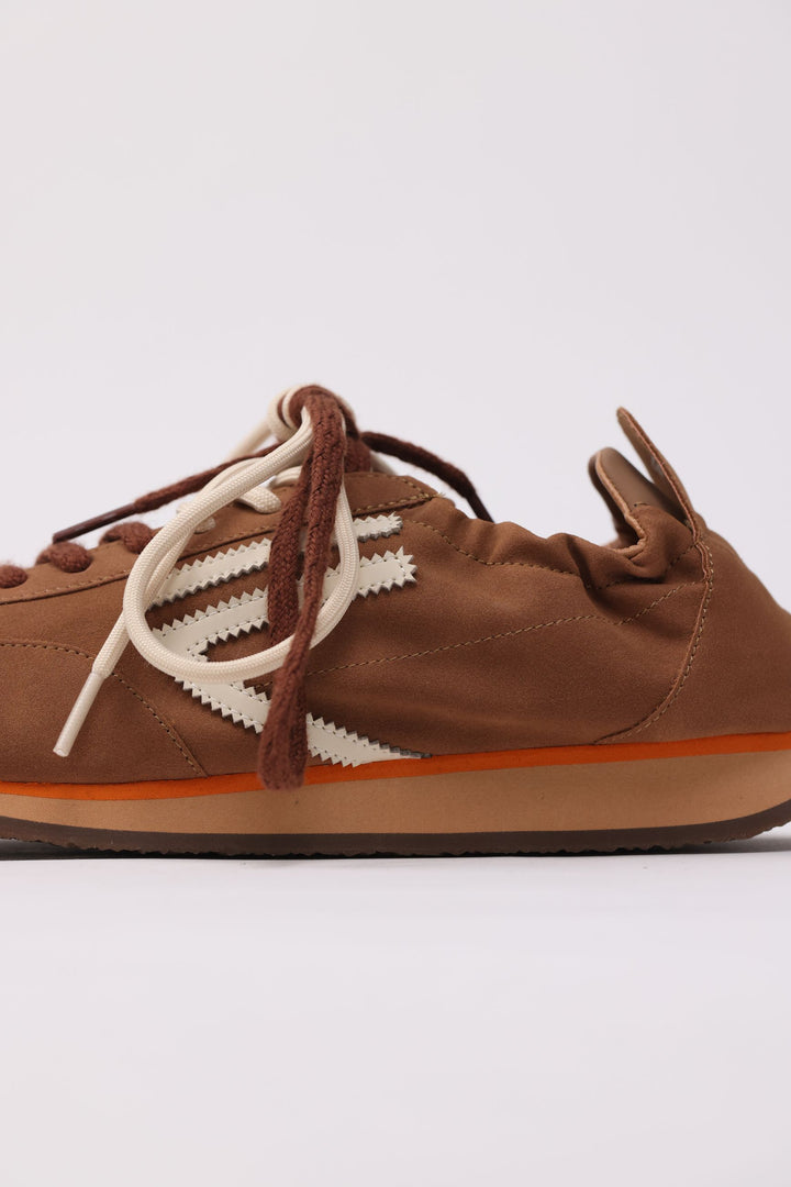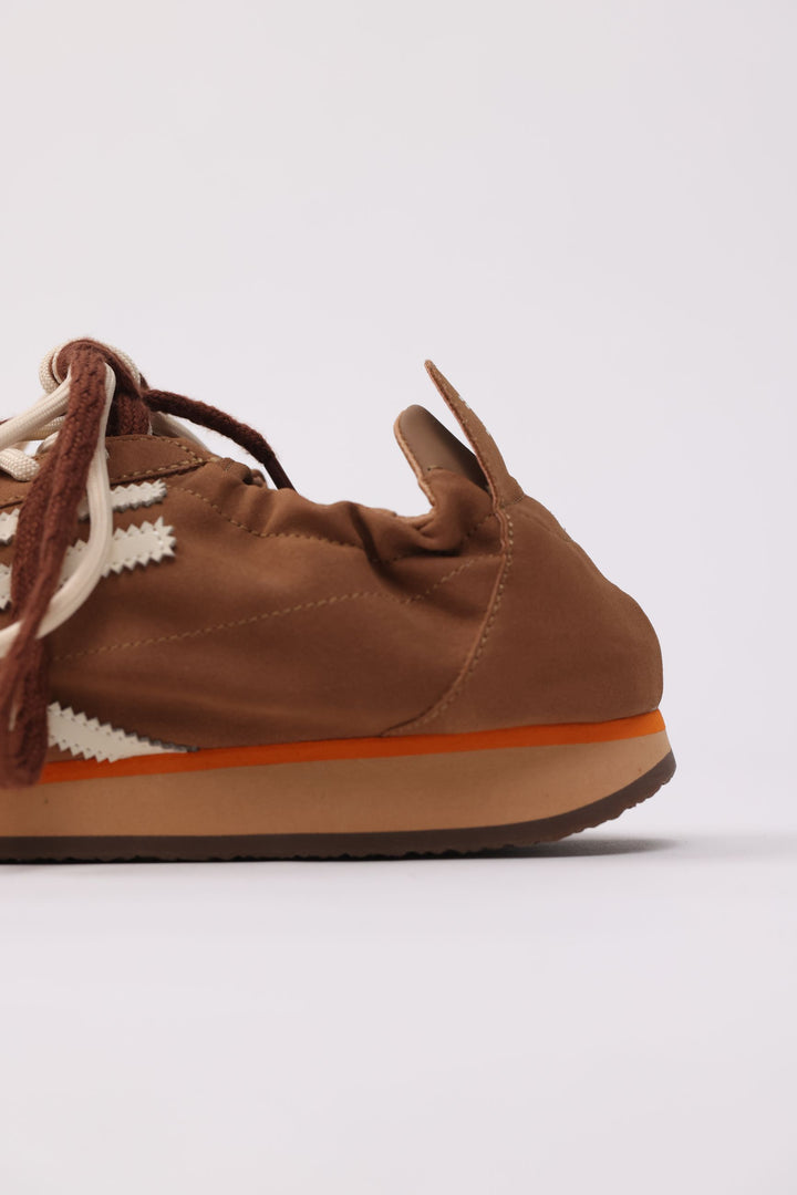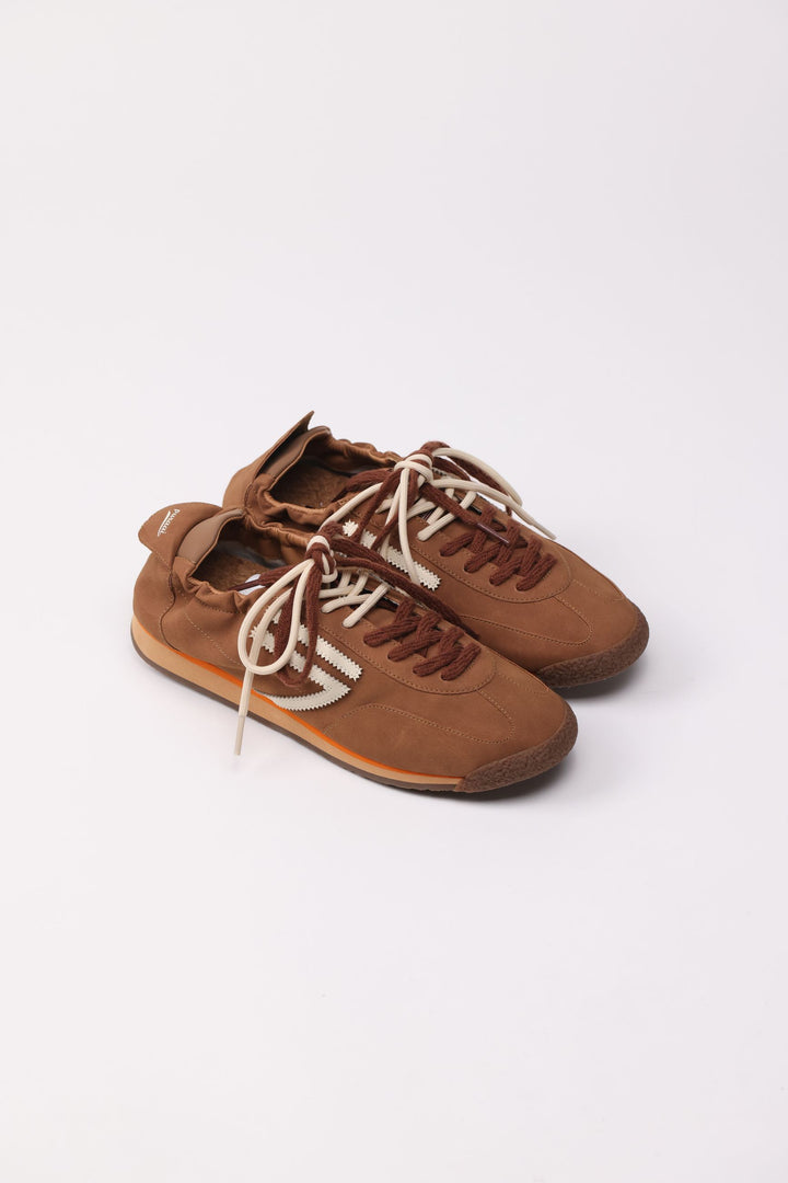 Sneankers in microsuede e pelle vegana caramello con doppio laccio