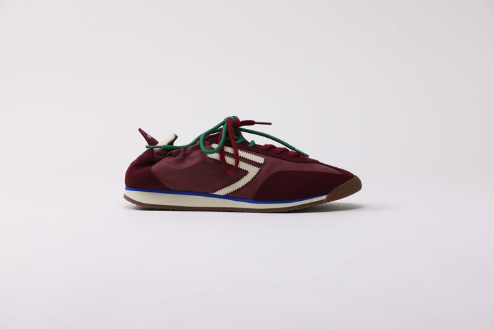 Sneankers in microsuede e pelle vegana Bordeaux con doppio laccio