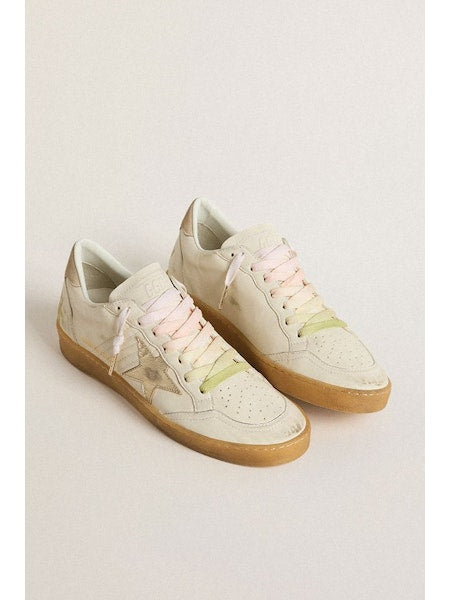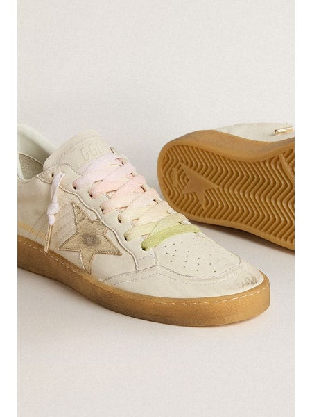 Sneakers ballstar in pelle bianca con stella platino e dettagli multicolor