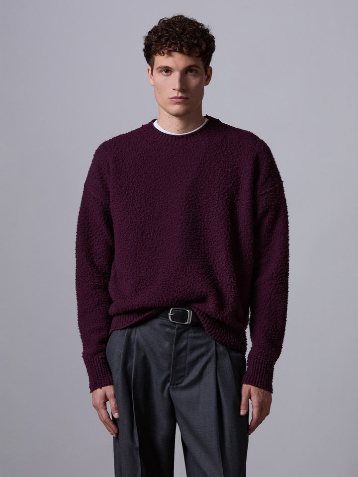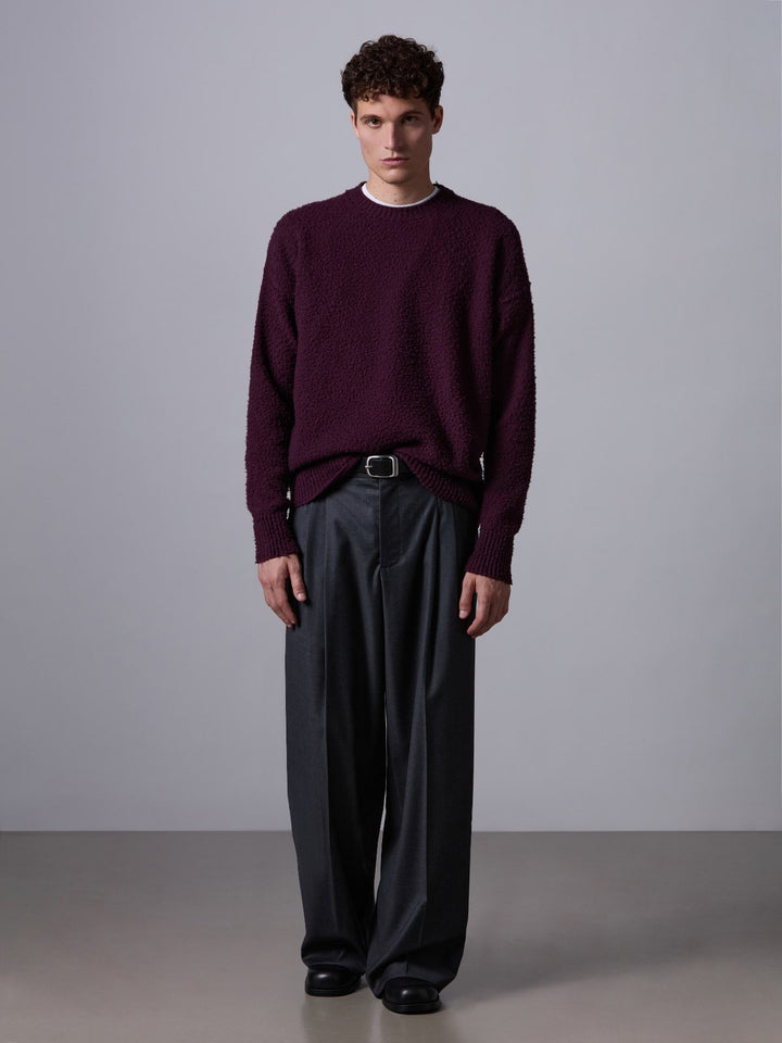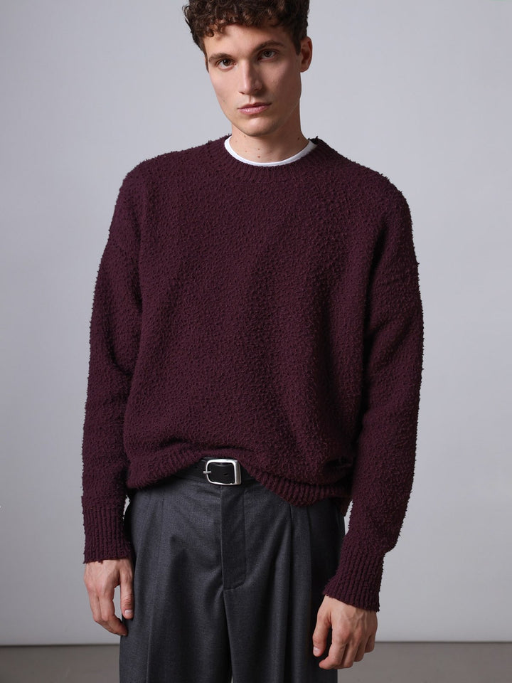 Maglia girocollo in lana con lavorazione casentino,