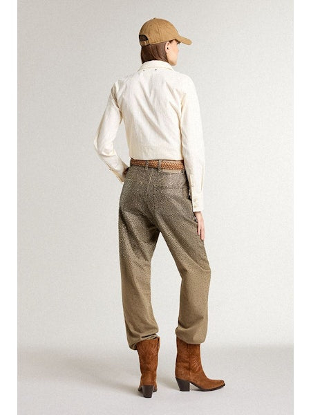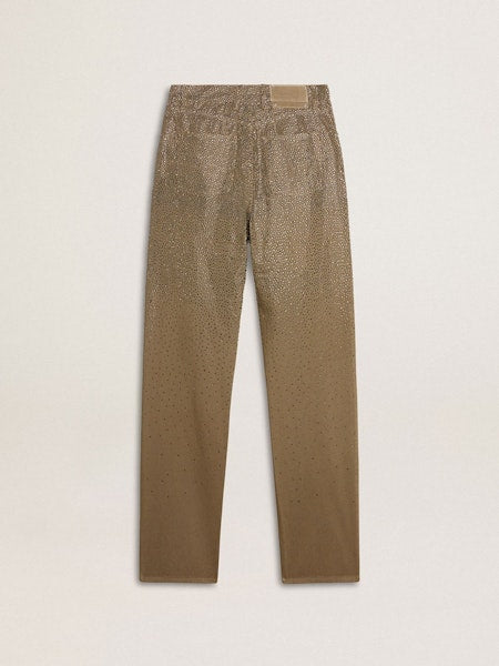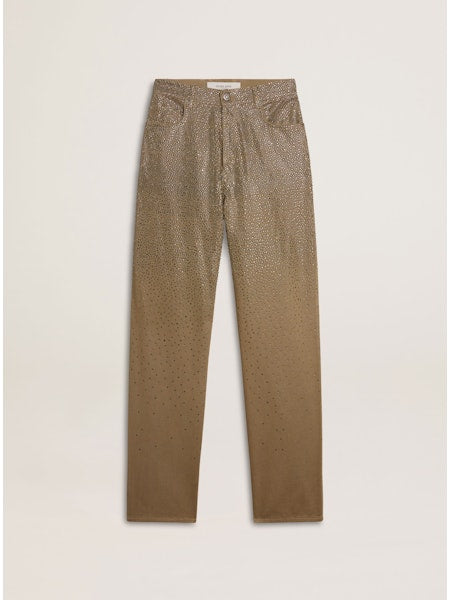 Pantalone in tela denim con pietre cucite a nano con effetto degrade'