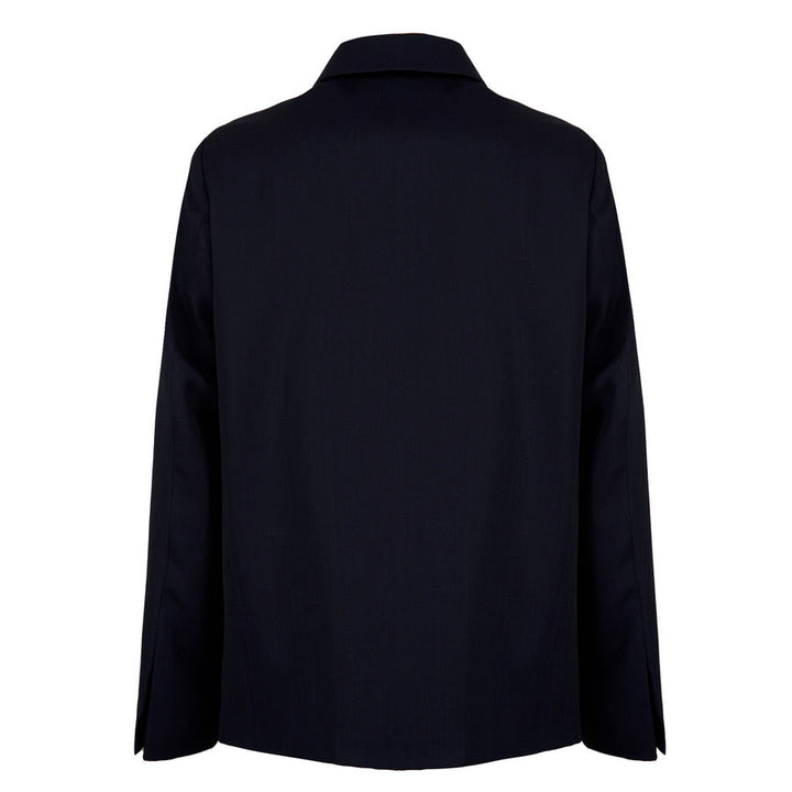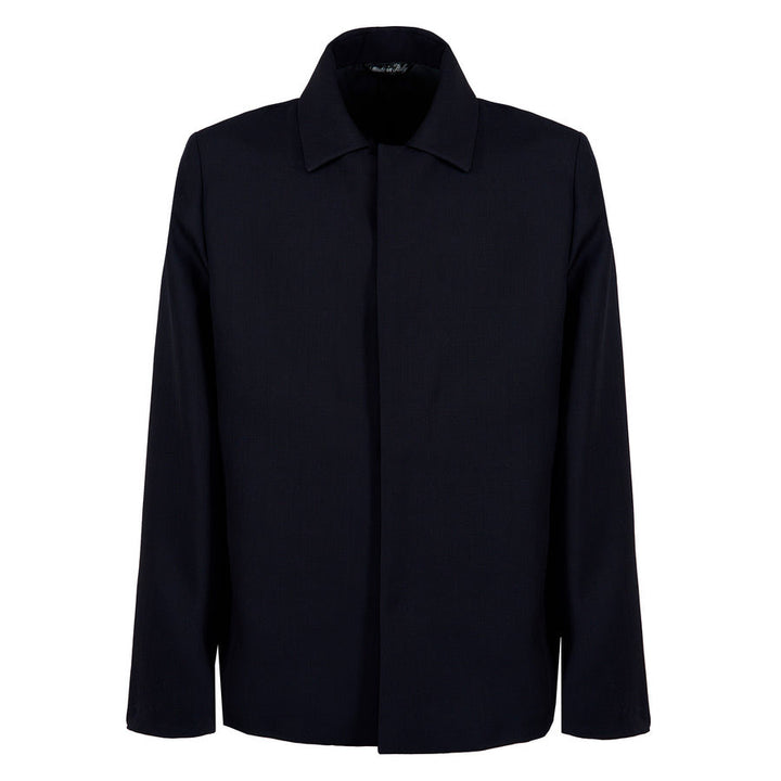 Giacca in lana tecnica con colletto a camicia e bottoni a scomparsa,