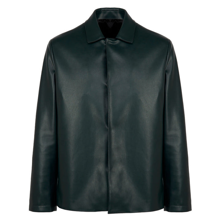 Giacca in Ecopelle giapponese con colletto a camicia e bottoni a scomparsa,