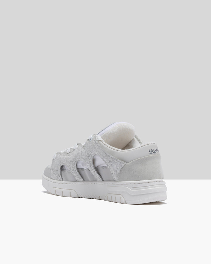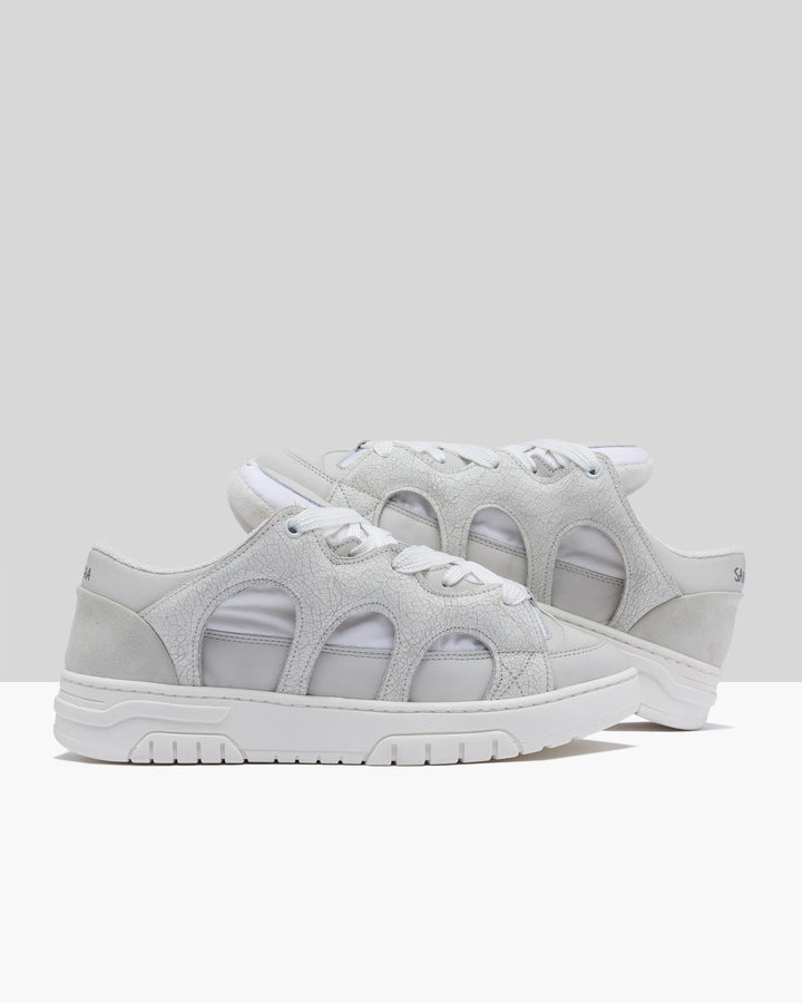 Sneakers in pelle e tessuto tecnico bianco con effetto cracked