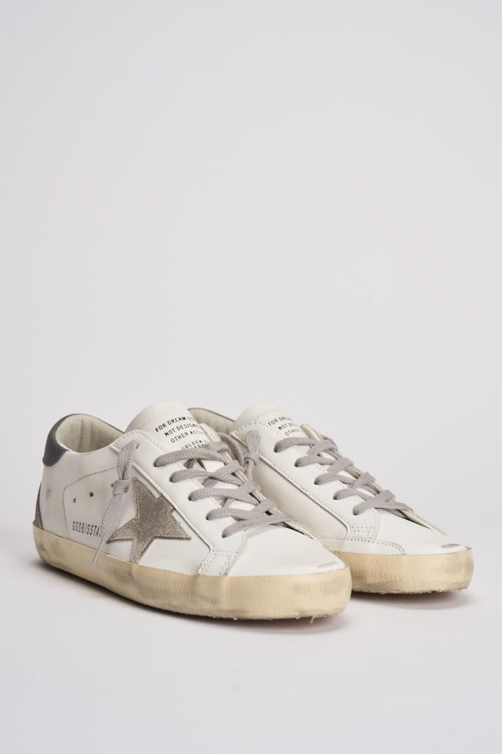 Sneakers super-star in pelle bianca con talloncino grigio e stella in camoscio