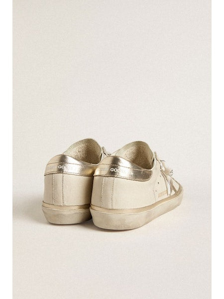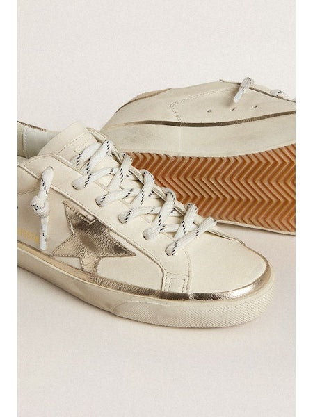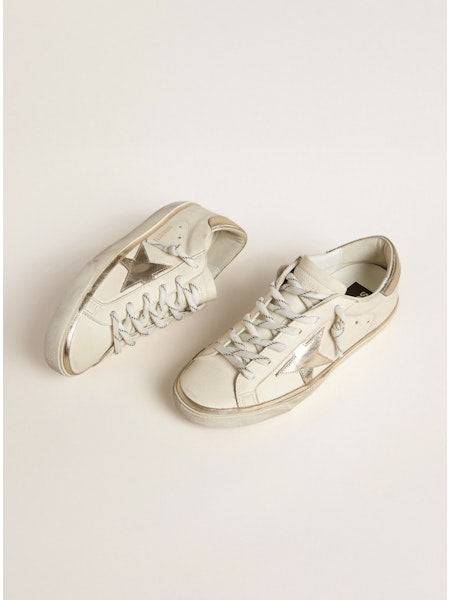 Sneakers superstar in pelle bianca con dettagli platino