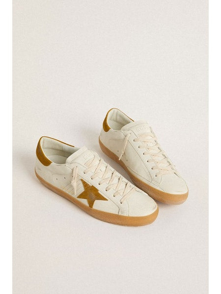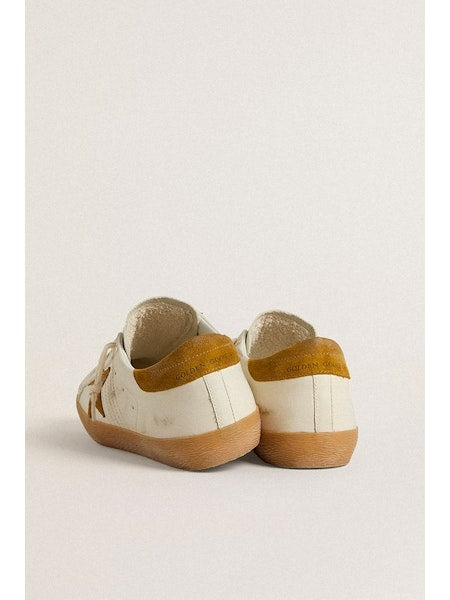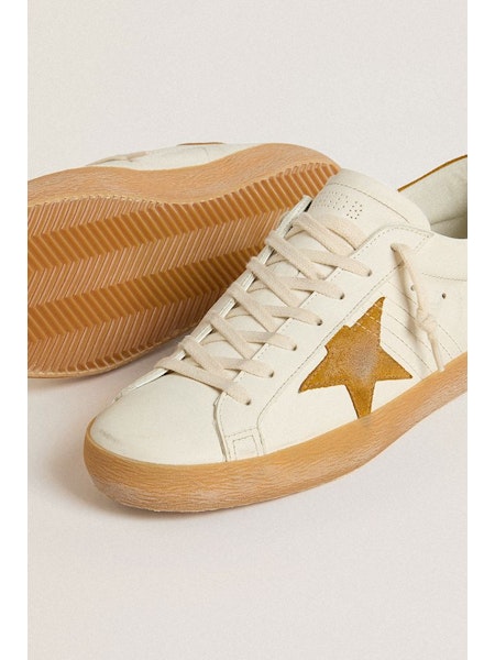 Sneakers super-star in pelle bianca con suola e dettagli ocra